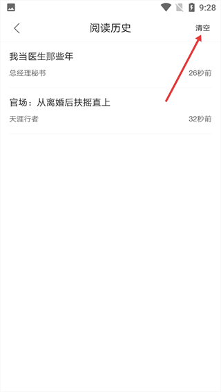 3、查看近期瀏覽的書籍記錄,點擊右上角【清空】按鈕。