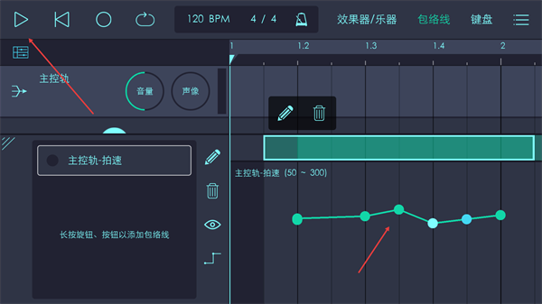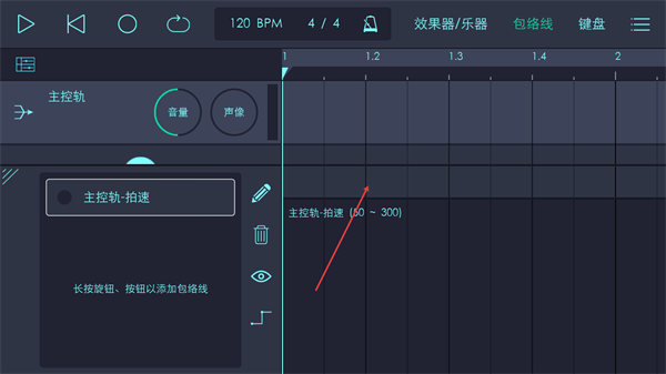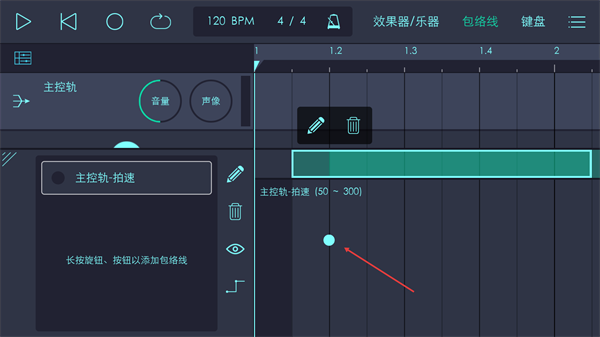 3、在包絡(luò)線編輯區(qū)域,拖動(dòng)節(jié)點(diǎn)可調(diào)整包絡(luò)線的曲線形狀。