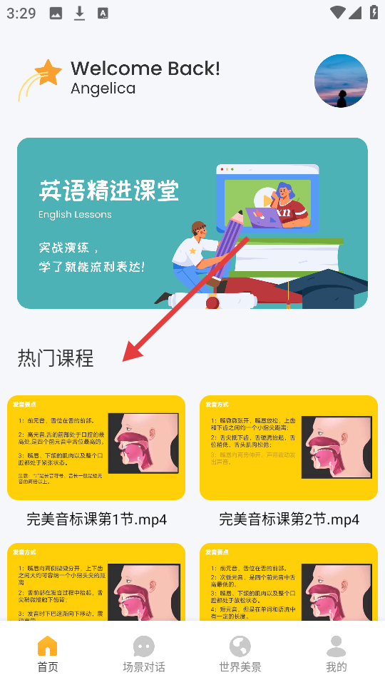 1、進入APP首頁,可參與【英語精進課堂】,學習熱門課程,提升英語能力。