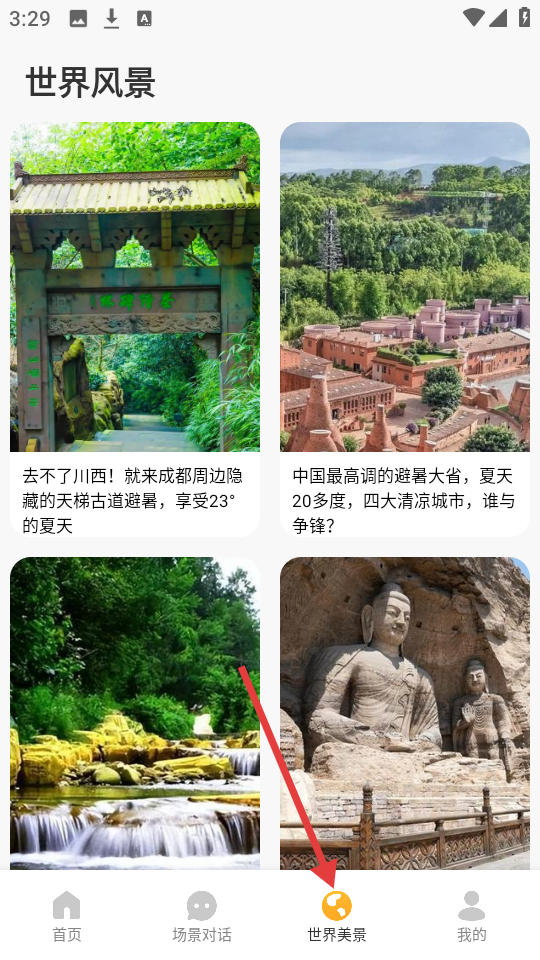 3、切換到【世界美景】,瀏覽各地風景圖片及相關介紹,感受不同風光。