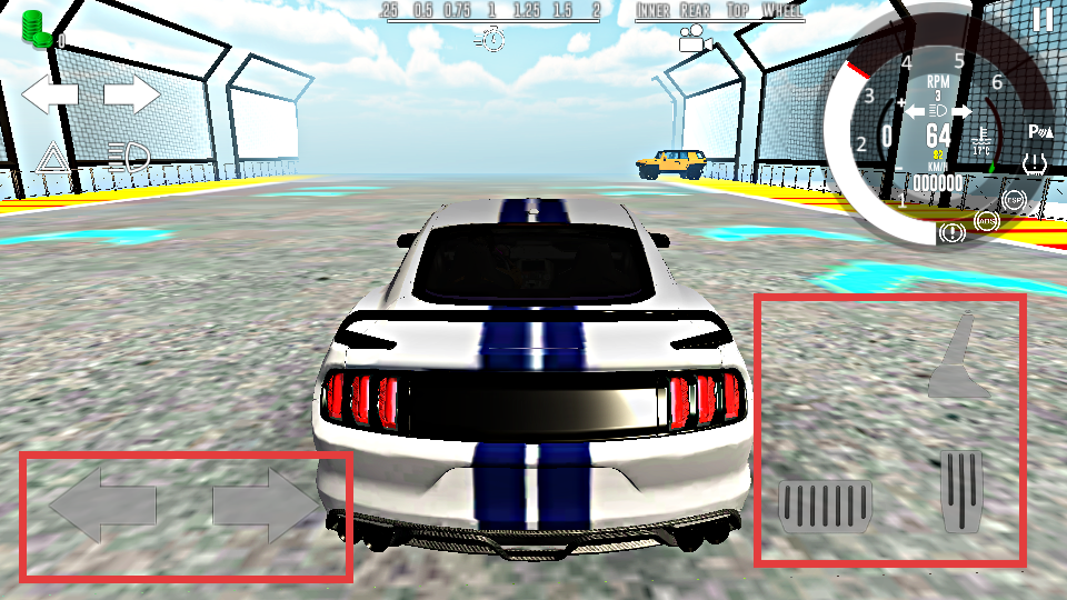 4、進(jìn)入駕駛視角后,利用左下方的方向按鈕操控車輛轉(zhuǎn)向,右側(cè)的踏板按鈕控制車輛的加速和剎車,開始進(jìn)行撞車模擬。