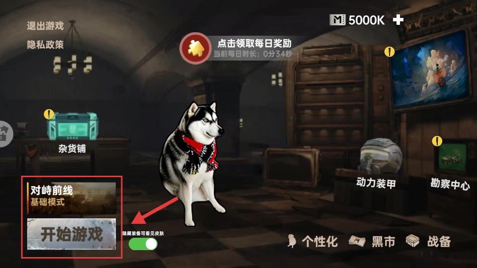 1、主界面找到【對峙前線-基礎模式】下的【開始游戲】按鈕,點擊進入對戰。