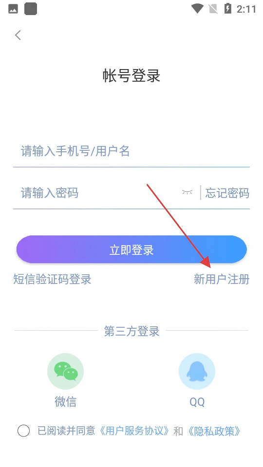 3、點擊【新用戶注冊】,進入賬號注冊頁面。