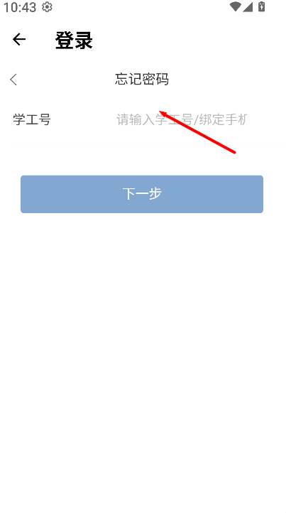 3、在密碼找回頁面輸入工號或手機號后,點擊“下一步”,按照提示完成驗證與重設操作,即可重新登錄軟件。
