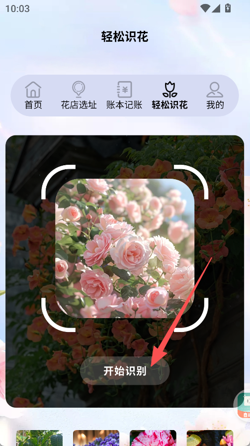2、“輕松識(shí)花”的操作流程簡(jiǎn)便,只需點(diǎn)擊 “開始識(shí)別” 即可啟動(dòng),能快速獲取花卉相關(guān)信息。