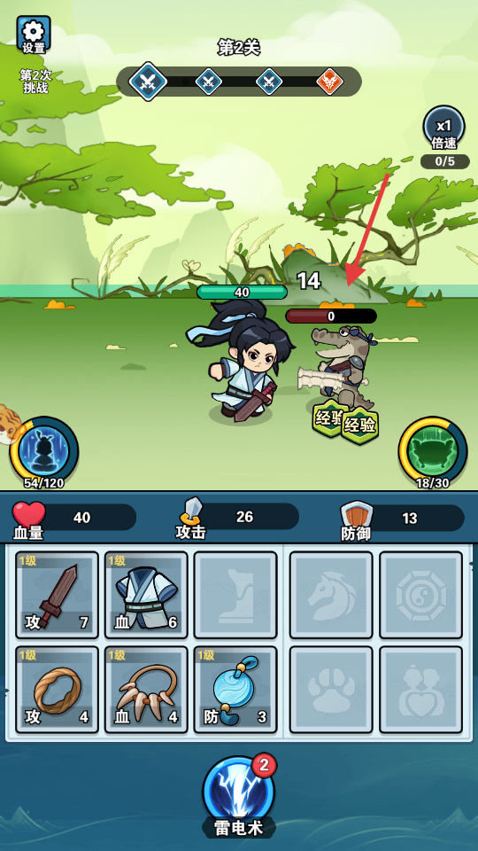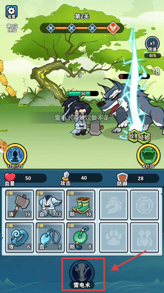 3、戰斗中留意【雷電術】冷卻,合理釋放主動技能,提升輸出以擊敗高難度怪物獲取經驗。