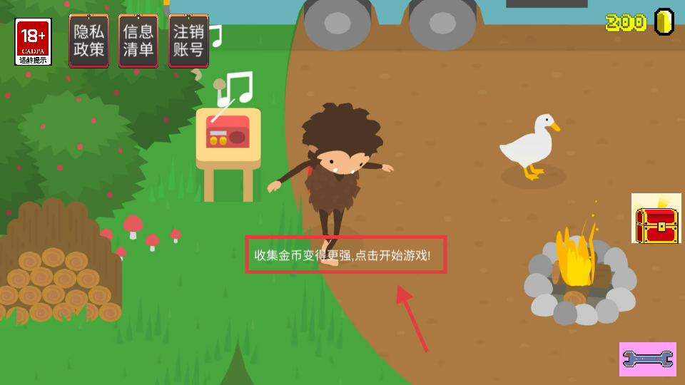 1、看到【收集金幣變得更強-點擊開始游戲】提示,點擊進入,開啟大腳怪的金幣收集旅程。