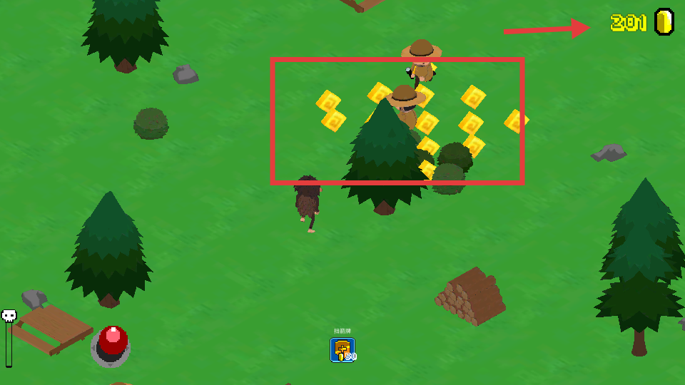 3、靠近【金幣】區域收集,金幣數量提升(如至201),同時留意護林員,避免被追捕。