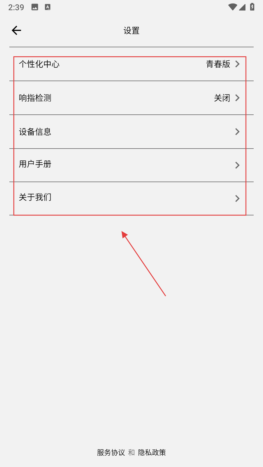 2、打開設置界面,能設置【個性化中心、響指檢測】,還可查看【設備信息、用戶手冊】等。