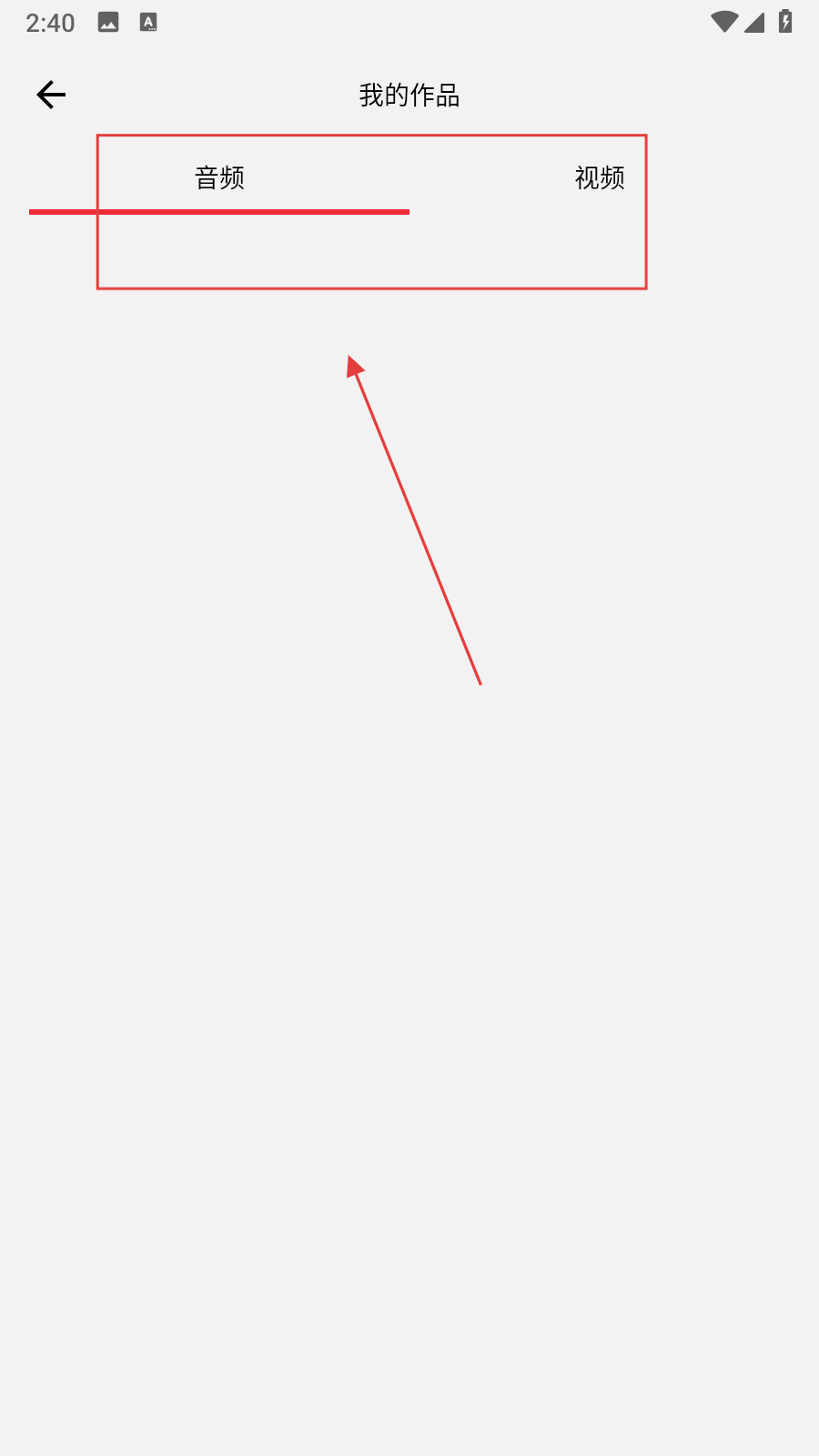 3、進入我的作品界面,可切換【音頻、視頻】標簽,查看自己創作的音頻或視頻作品。