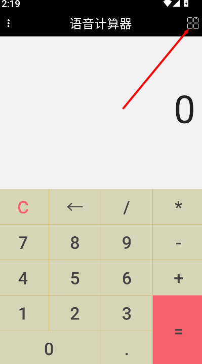 1、進(jìn)入語音計(jì)算器首頁后,可以在界面右上角找到功能圖標(biāo),點(diǎn)擊進(jìn)入擴(kuò)展功能頁面,方便選擇不同的計(jì)算工具。