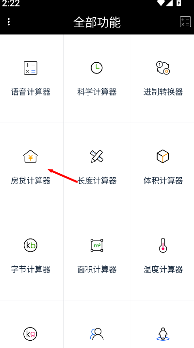 2、在功能頁面中可以查看到語音計(jì)算器所包含的多種實(shí)用功能,其中房貸計(jì)算器是常見的金融工具,點(diǎn)擊即可進(jìn)入。