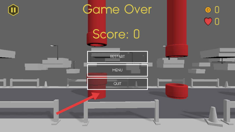 4、若游戲失敗,顯示GameOver,可選擇RESTART重新挑戰(zhàn)、MENU返回菜單或QUIT退出,調(diào)整策略后再次嘗試跑酷。