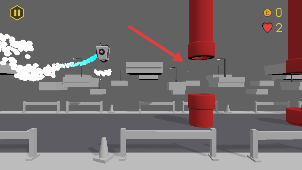 3、遇到紅色柱狀障礙物時(shí),精準(zhǔn)操作避開(kāi),避免碰撞導(dǎo)致生命值減少,持續(xù)向關(guān)卡深處推進(jìn)。