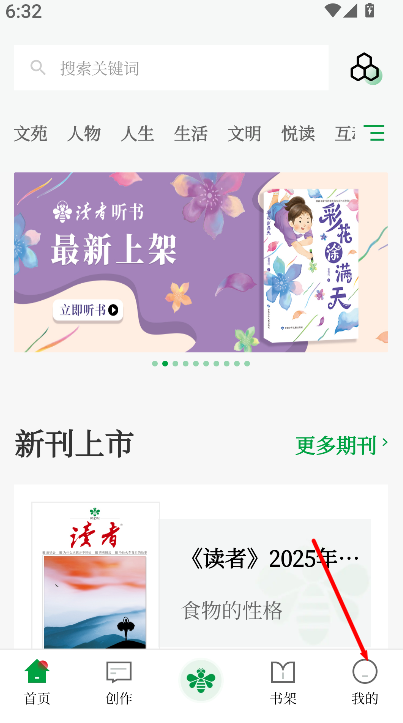 1、進入《讀者》app后,點擊界面右下角的“我的”選項,進入個人中心頁面。