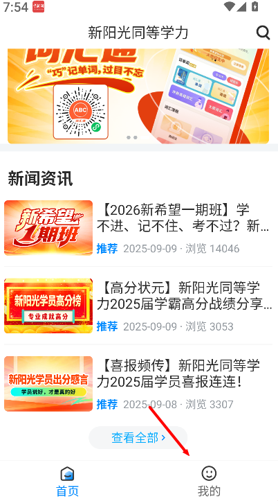 1、打開安裝完成的《新陽光教育》app后,點擊界面下方的“我的”選項,進入個人中心頁面。
