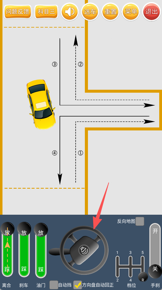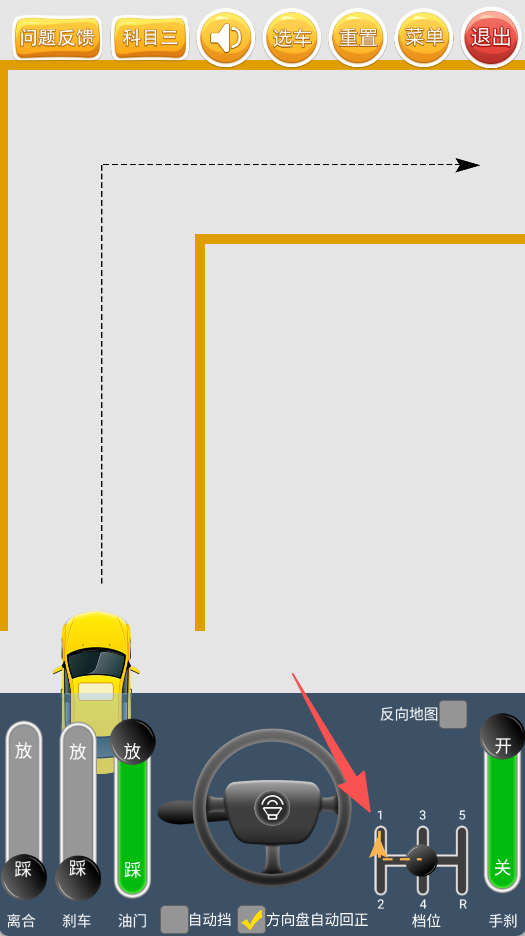3、選擇科目三,調整離合、剎車、油門,進行模擬練習。