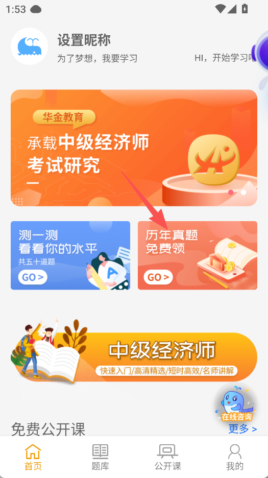 1、在首頁點擊歷年真題免費領(lǐng)。