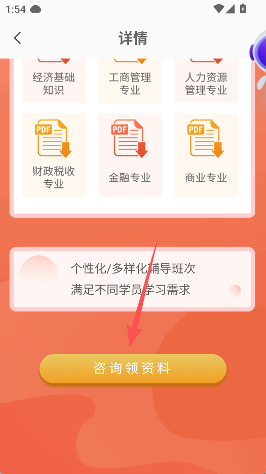 2、進入詳情頁,點擊咨詢領(lǐng)資料,獲取多專業(yè)PDF資料。