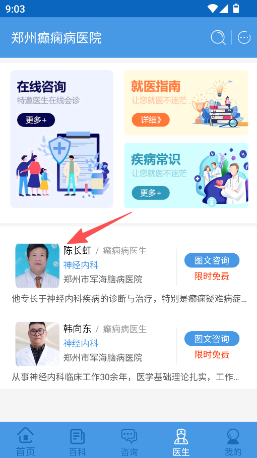 2、醫生團隊明確,神經內科專家入駐,圖文咨詢模式直接,為癲癇患者提供針對性問診渠道。