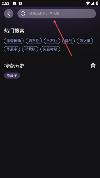2、在搜索界面,輸入歌曲名稱或歌手名字。