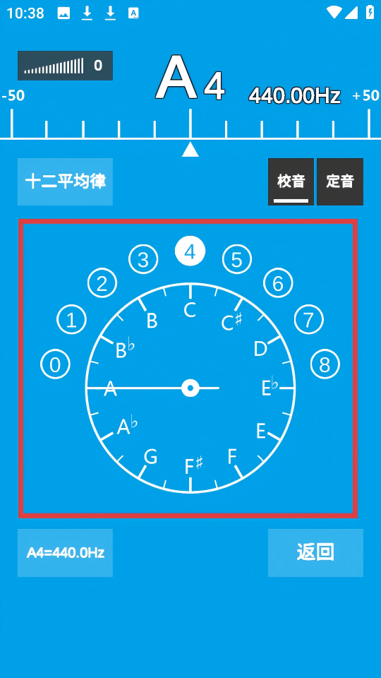 4、在該界面可依據(jù)十二平均律等刻度進行校音操作。