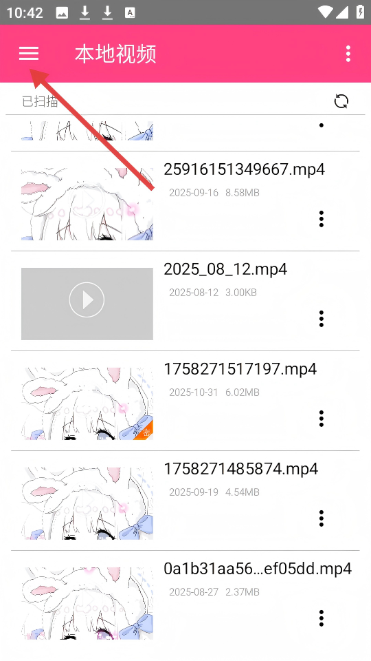 1、點擊【本地視頻】頁面左上角的菜單圖標,可展開更多功能選項。