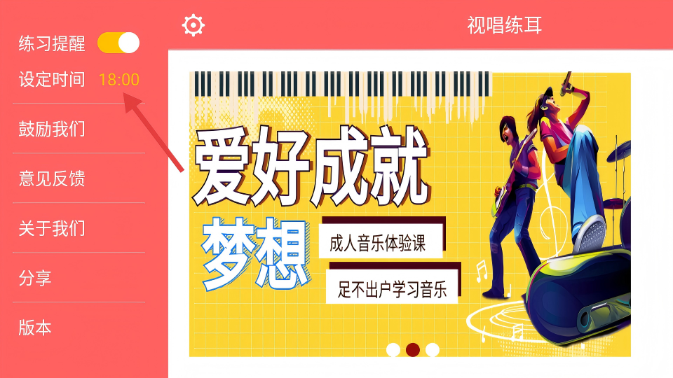 4、開啟【練習提醒】后,可設置【設定時間】為18:00來接收練習提示。