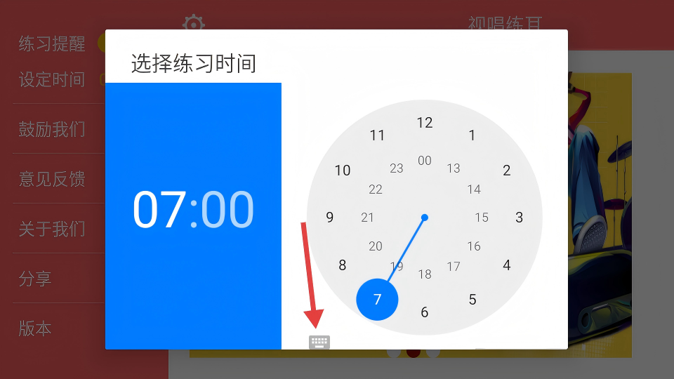 2、在時間選擇界面,可點擊下方鍵盤圖標切換輸入方式來設置練習時間。