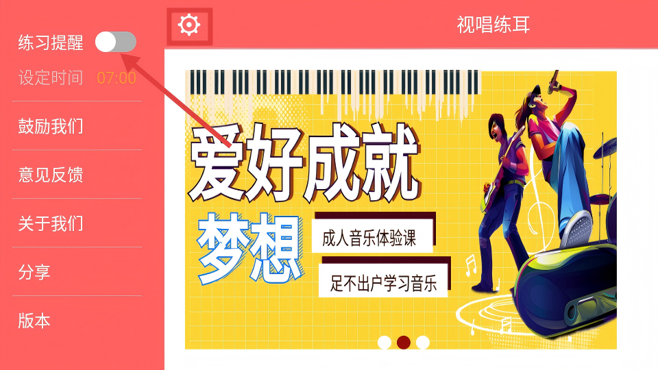 1、點擊上方【設置】圖標可進入設置界面,在點擊【練習提醒】開關可關閉提醒。
