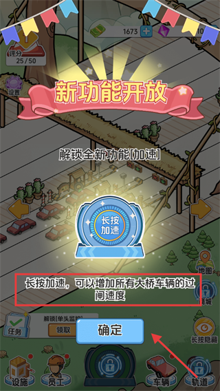 3、解鎖【長按加速】,長按增所有大橋車輛過閘速,點擊【確定】啟用該功能。