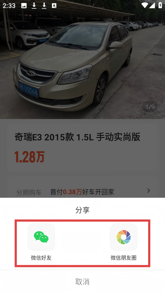 4、分享【奇瑞E3】時,可選【微信好友】或【朋友圈】。