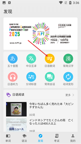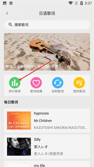 2、選擇【日語歌詞】功能入口,進入日語歌詞模塊。