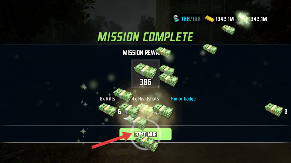 4、任務(wù)完成后點(diǎn)擊【CONTINUE】,領(lǐng)取獎(jiǎng)勵(lì),繼續(xù)挑戰(zhàn)新任務(wù),提升戰(zhàn)斗技巧。