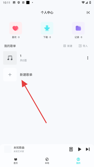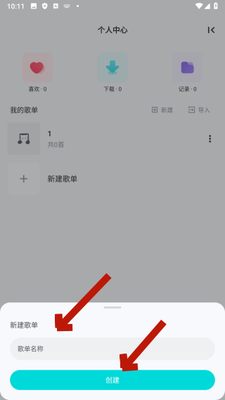 2、在個人中心頁面,點擊【新建歌單】的加號,彈出新建歌單輸入框。