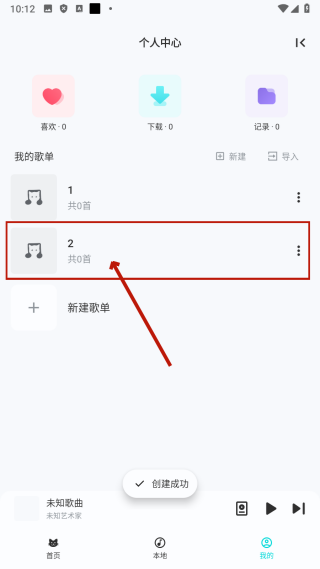 4、在個人中心頁面,即可看到【新建的歌單】,即可完成歌單創建操作。