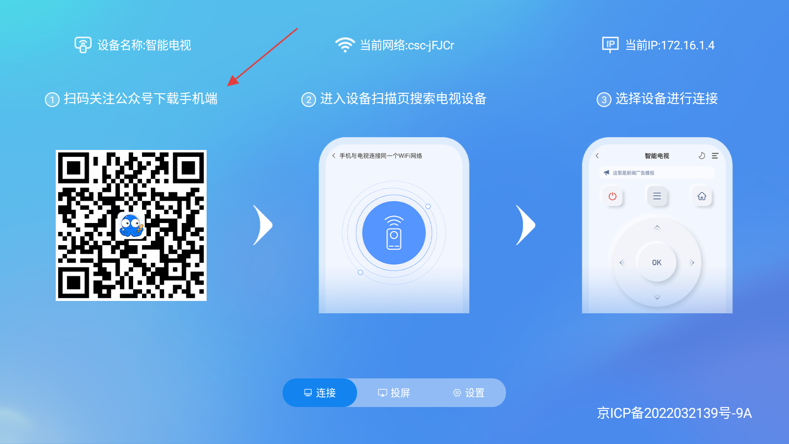 1、可掃碼【關注公眾號下載手機端】,開啟設備連接操作。