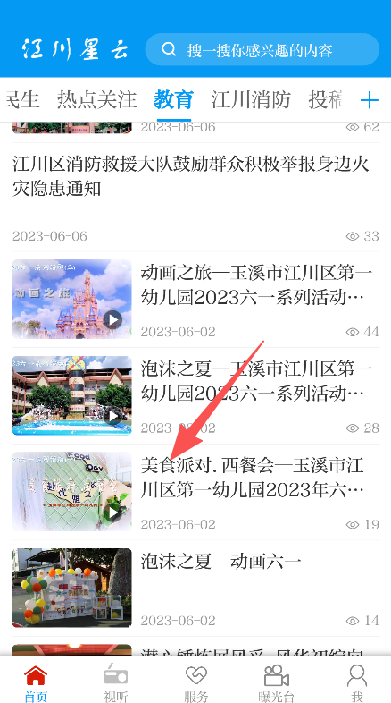 1、可分類瀏覽資訊,選擇教育、民生等板塊,獲取對應(yīng)本地資訊,了解江川本地動態(tài)。