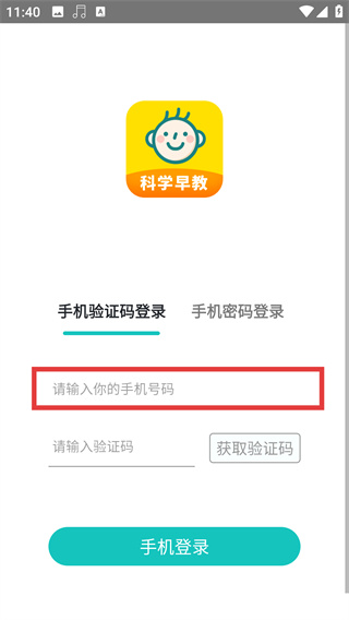 2、在手機驗證碼登錄頁面輸入【手機號碼】,準備獲取驗證碼。