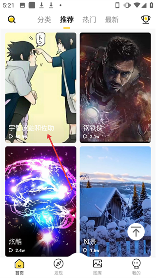 1、在推薦頁面點擊【宇智波鼬和佐助】壁紙進入詳情頁。