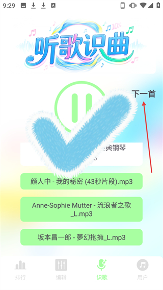 4、答題完后,點擊【下一首】按鈕,可切換至下一首音樂。