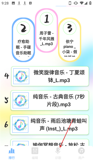 2、進入首頁,點擊下方【識歌】,進入聽歌識曲頁面。