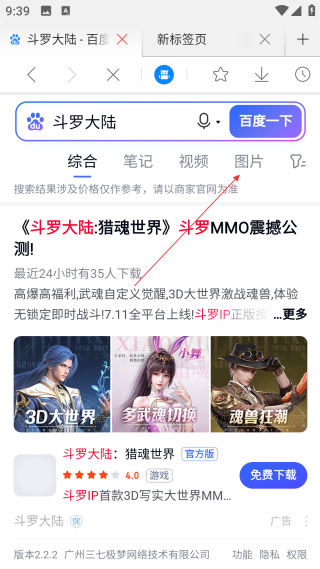 2、在搜索結果頁,點擊【圖片】標簽,切換到對應的圖片結果展示界面。