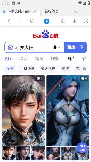 3、在圖片結果頁,選擇【目標圖片并點擊】,進入該圖片的詳情查看頁面。