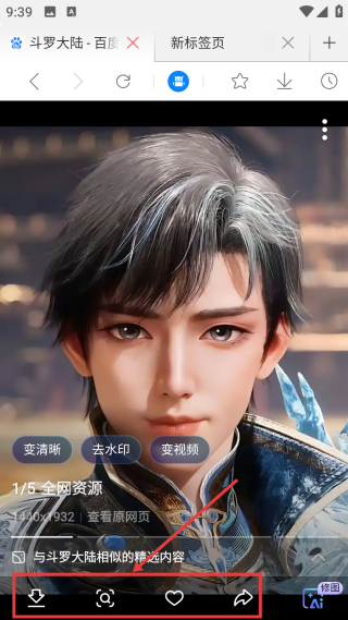 4、在圖片詳情頁,使用【底部功能按鈕】,即可對該圖片進行下載等操作。