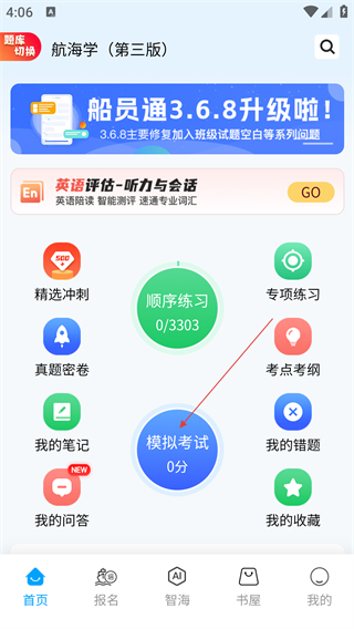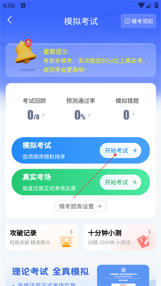 1、在首頁點擊【模擬考試】模塊,進入模擬考試的功能頁面。