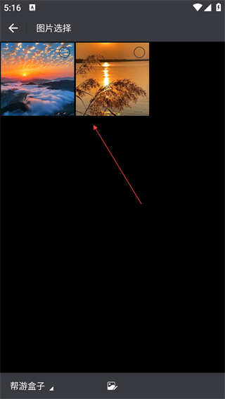 3、在圖片選擇界面,挑選需要拼接的圖片(如示例中的兩張風景圖),進入拼圖編輯界面。