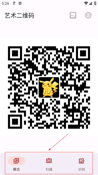 4、在藝術二維碼界面,可通過底部【模式】等按鈕,設置二維碼樣式,完成個性化二維碼的制作。