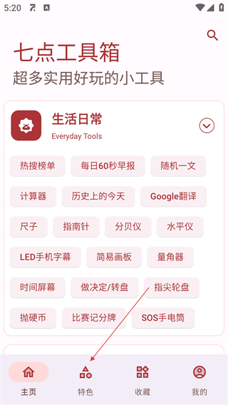 2、在主界面點擊底部【特色】選項,進入特色工具頁面,查看各類功能。