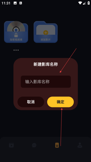 3、在新建影庫彈窗的【輸入框填寫名稱】,點擊【確定】完成影庫創(chuàng)建。